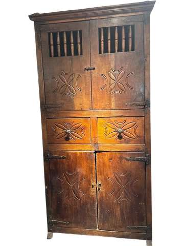 16TH CENTURY HAND CARVED WALNUT HUTCH. (SPAIN) 42" W X 19.5" D X 83"H