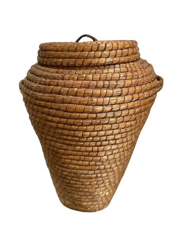 VINTAGE HAND WOVEN BASKET 26" H X 21" DIA